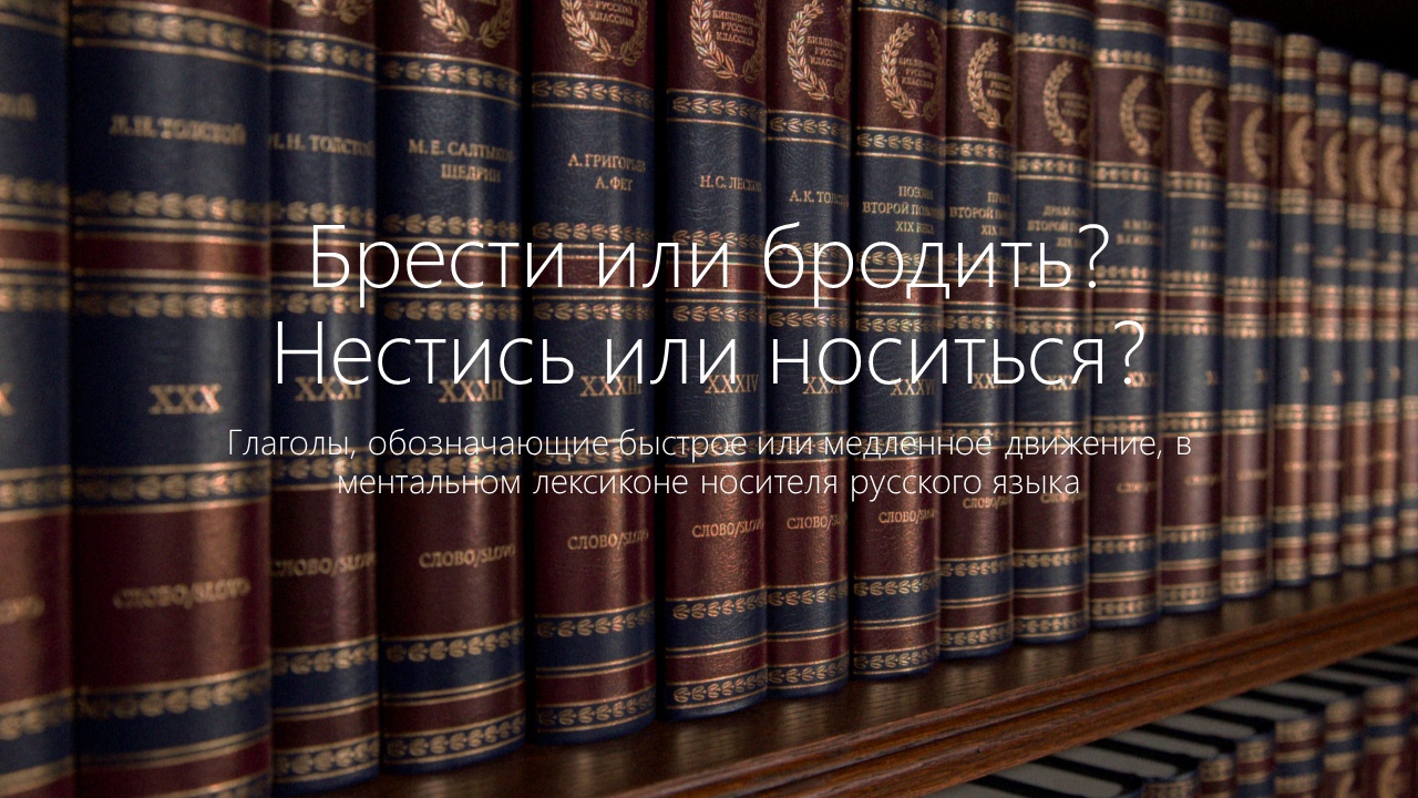 Участники студии гимназии №23 города Краснодара решили изучить глаголы, обозначающие быстрое или медленное движение в ментальном лексиконе с помощью методики «Ассоциативный эксперимент в психолингвистике». Во время исследования респонденты (всего участников опроса было 36: 20 мужчин и 16 женщин в возрасте от 18 до 35 лет) называли свои ассоциации на различные глаголы, обозначающие движение: «бродить», «лететь», «тащиться» и так далее. В конце ребята попытались сделать вывод о том, как осуществляется обработка и хранение языковых единиц носителем языка.